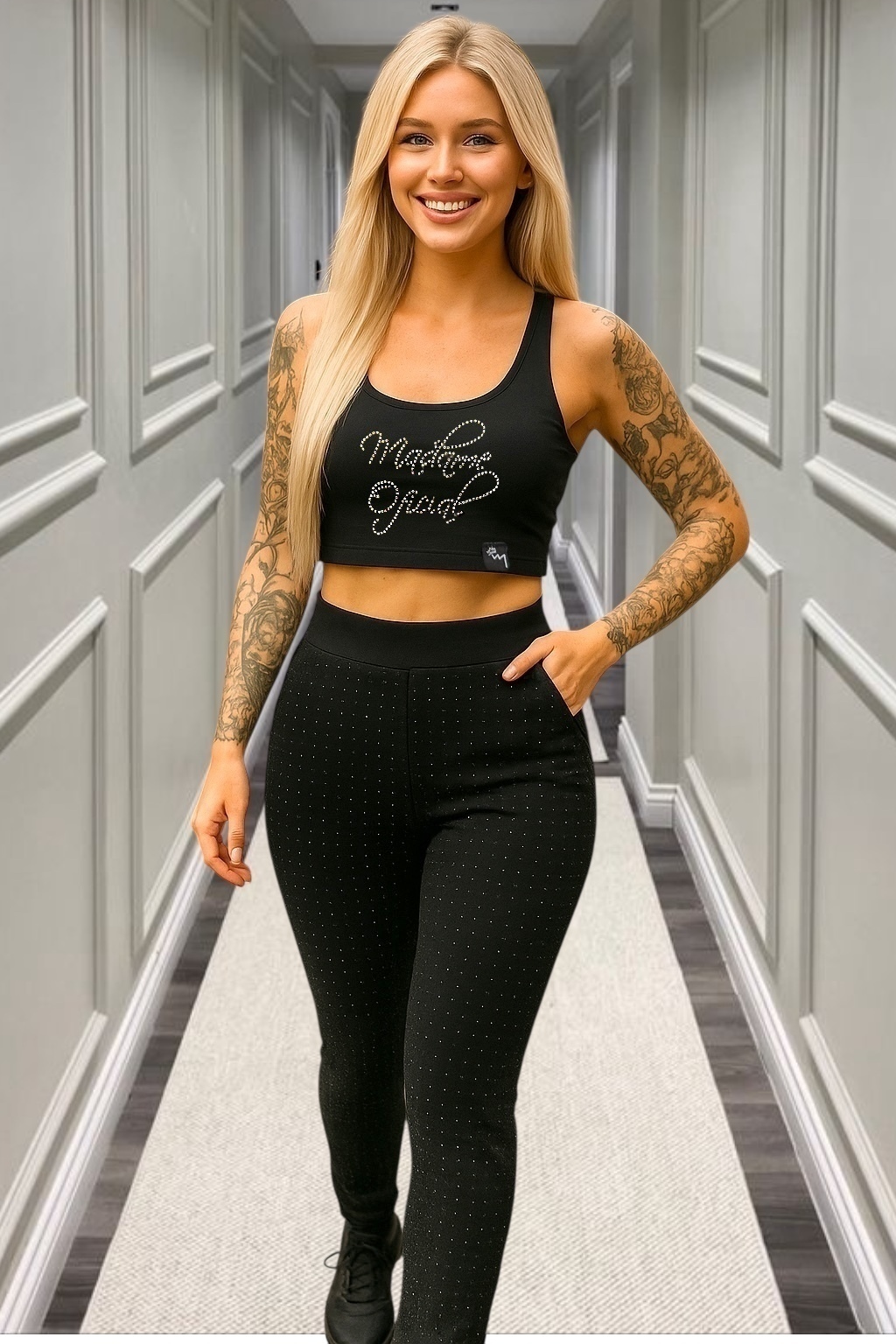 "Brilhe em cada passo com nossa calça Bengaline! ✨👖 Bolsos traseiros para praticidade e pedrarias na frente para um toque de elegância. #BrilhoEEstilo #ElegânciaModerna #ModaComBrilho