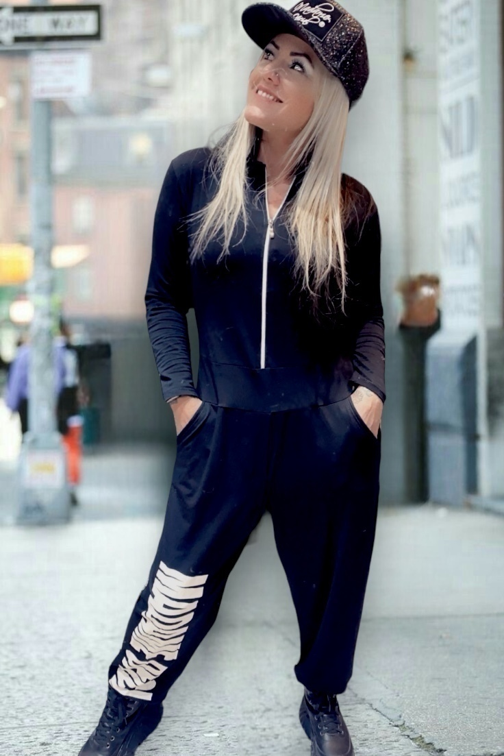 "🌟 Desperte seu lado fashionista com este macacão de manga longa! O zíper frontal traz praticidade, enquanto a estampa na perna adiciona um toque de ousadia. Vista-se para impressionar e deixe sua marca por onde passar! ✨ #ModaComEstilo #OusadiaFashion #ImpressioneSempre"