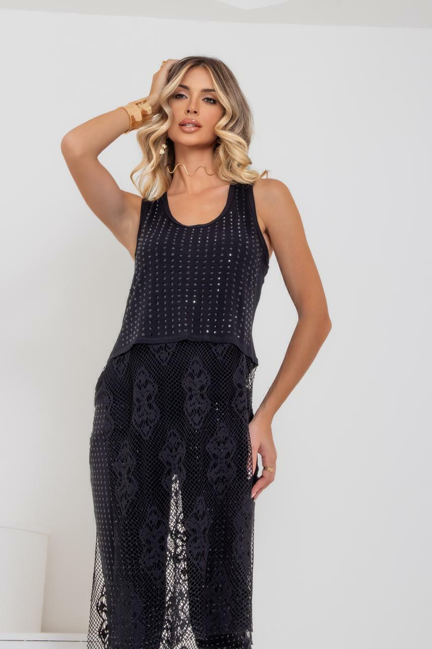 "✨ Eleve seu estilo com nossa regata nadador adornada com renda e pedrarias! Um toque de elegância e sofisticação para qualquer ocasião. 🌟 #ModaElegante #EstiloÚnico #RegataChique"