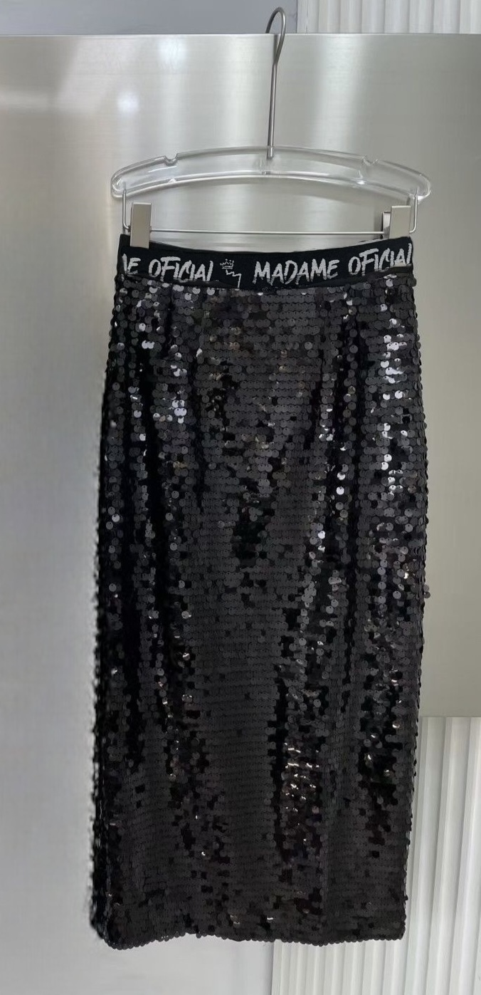 Saia Midi Paetês com cós de elástico personalizado.. Tamanhos M veste 38 ao 42 e G veste do 44 ao 46. Tecido Paetês premium com elastano, detalhe do cós com elástico personalizado. Aberta nas laterais.