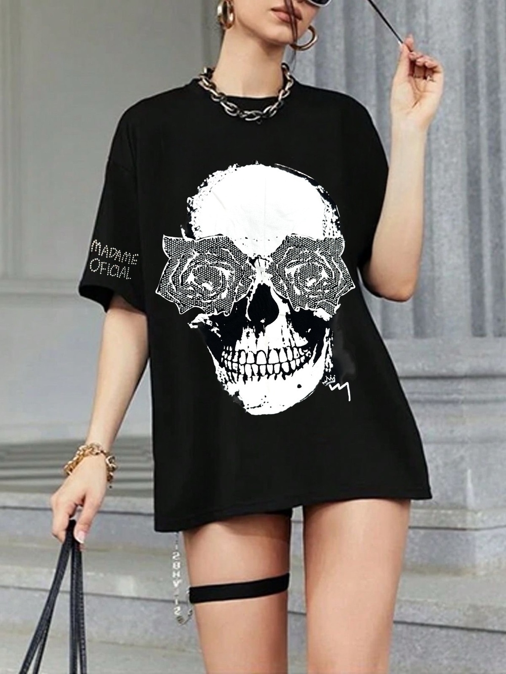T-shirt Caveira Flor Femin.Tamanho Único - Veste do 36 ao 46. Tecido Viscolycra Premium com elastano.