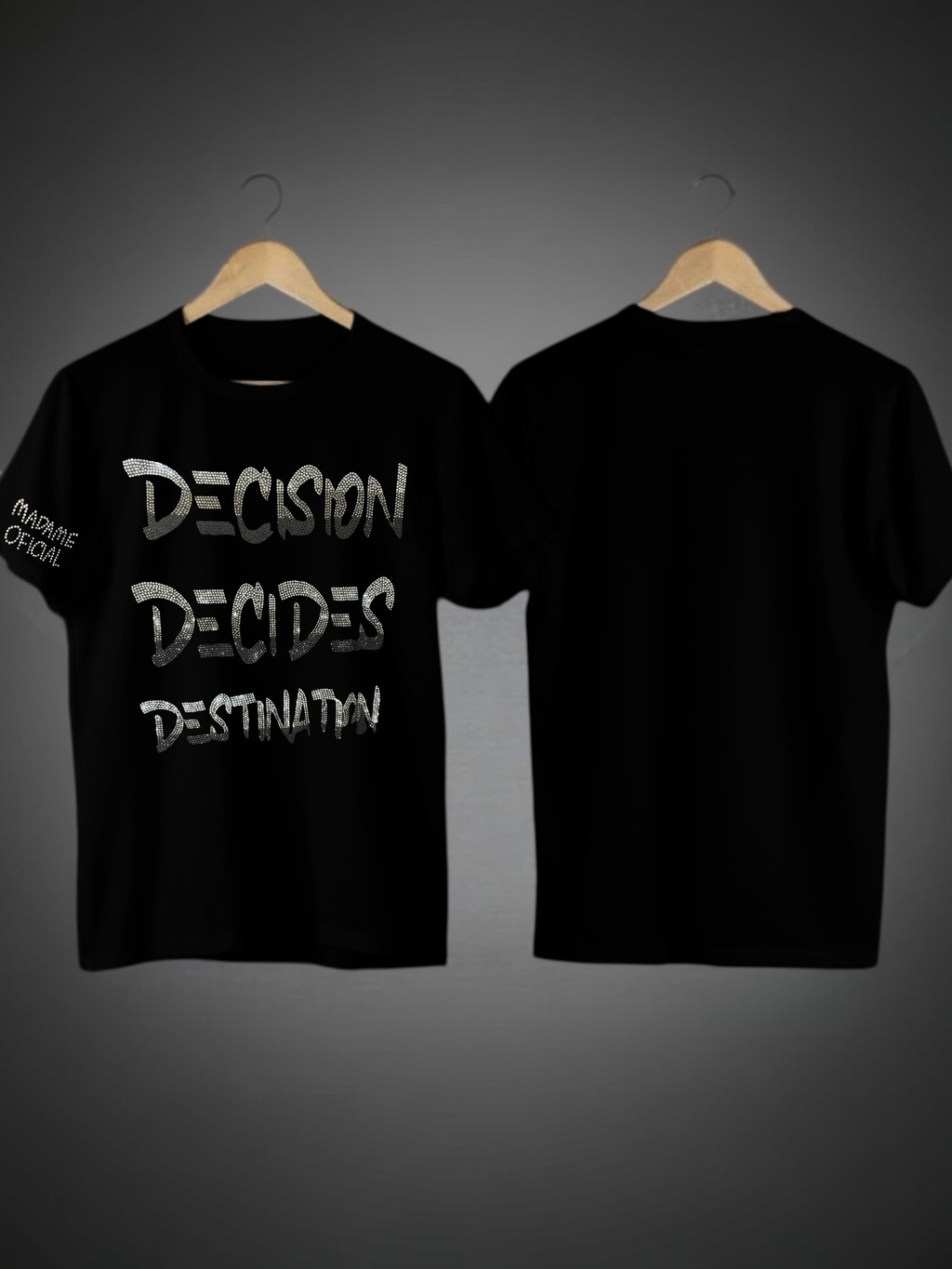 T-shirt New Decisões . Tamanho Único - Veste do 36 ao 46. Tecido Viscolycra Premium com elastano. Pedraria Alto Brilho.