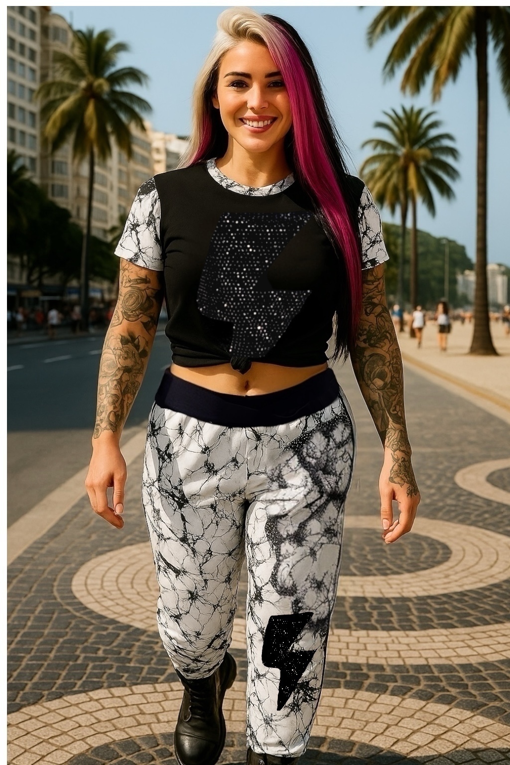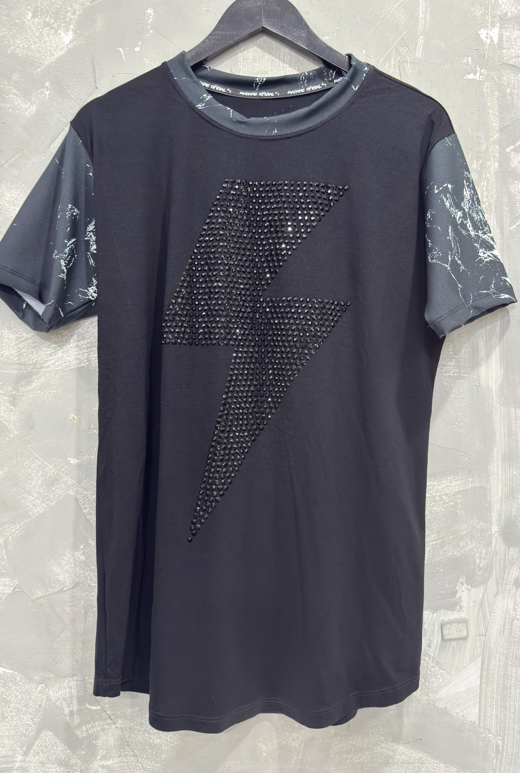 T-shirt Raio manga marmorizada .Tamanho Único - Veste do 36 ao 46. Tecido Viscolycra Premium com elastano. Pedraria de alto brilho. Estampa exclusiva.