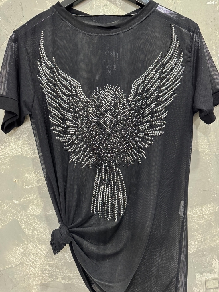 T-shirt Tule com pedrarias. Tamanho único - Veste 38 ao 44. Tecido Tule de poliamida Premium com elastano. Com Pedrarias de Alto Brilho.
