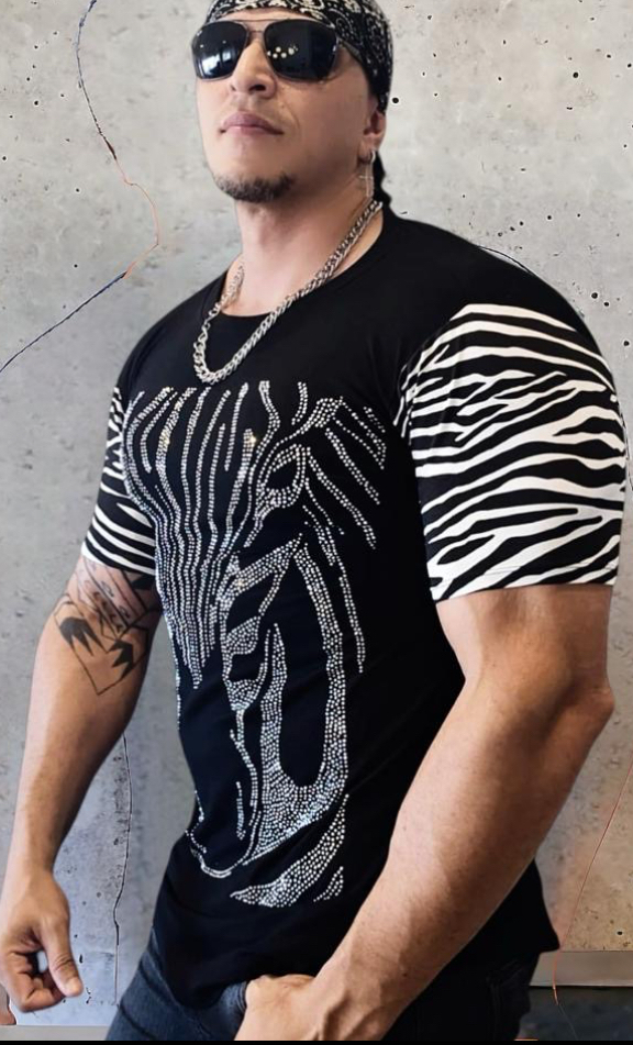 T-shirt Zebra. Tamanho Único - Veste do 36 ao 44. Tecido Viscolycra Premium com elastano. Mangas animal print, aplicação pedrarias.