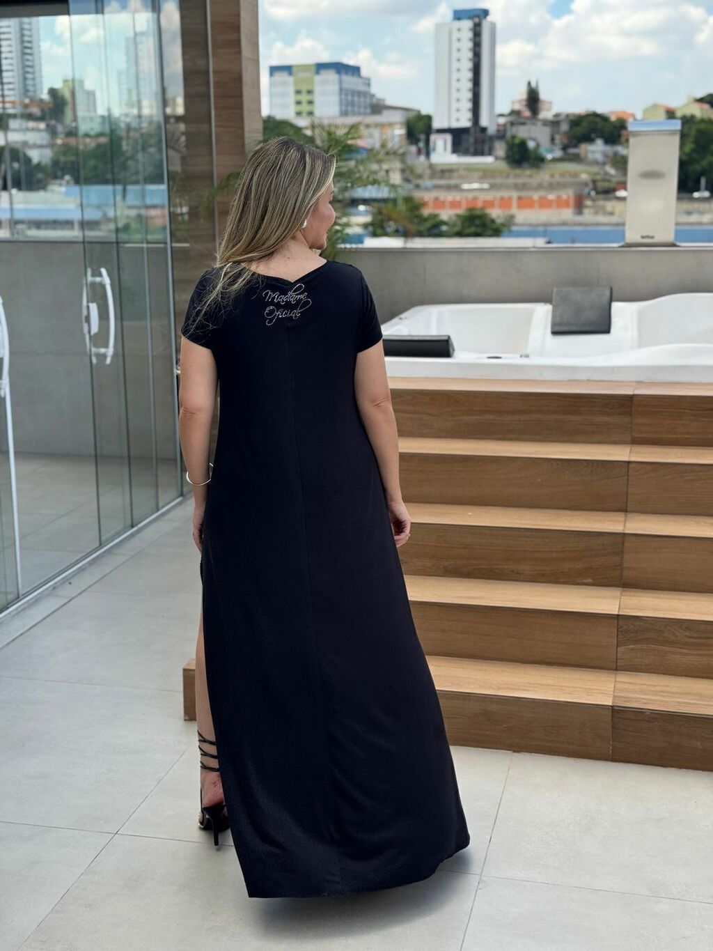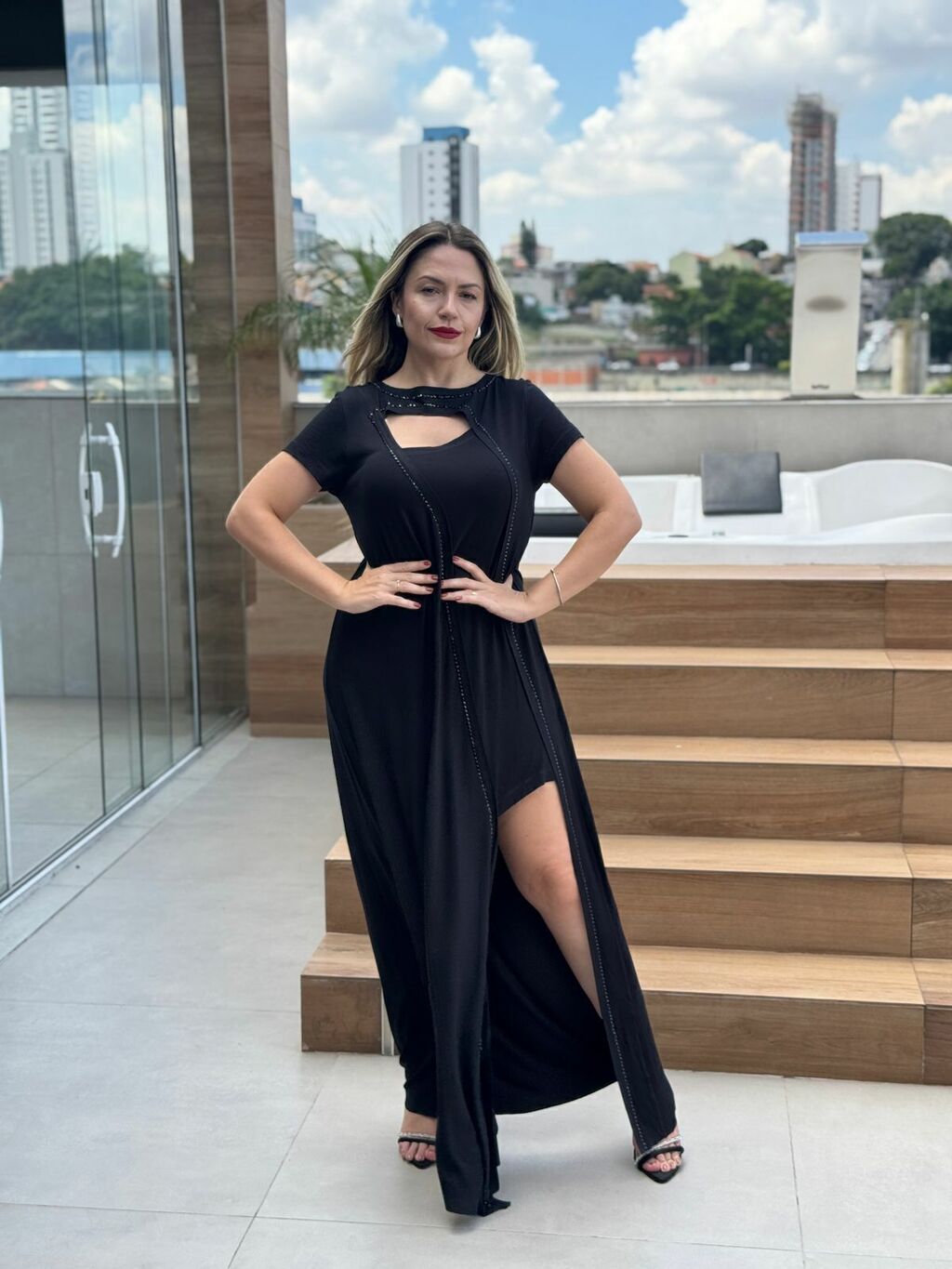 Vestido longo com recortes na frente, detalhes em pedrarias nas laterais e na frente, tecido viscolycra premium com elastano. Tamanho único veste 38 a 48. "Um toque de glamour e praticidade! 🌟 é a definição de elegância moderna. 💃✨ #EstiloQueFazADiferença"